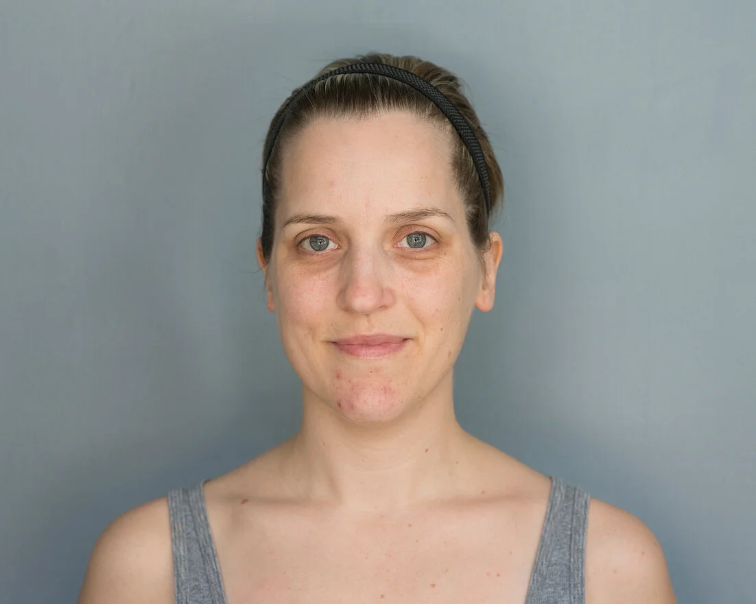 If nothing else, please consider applying some concealer. Actually, there’s a bit more than just concealer at work here. Makeup artist Brittany Cantrell helped me out with this demo. She used a mattifying primer, tinted under-eye concealer, flesh-colored blemish concealer, matte foundation, powder, blush, lip balm, eyeliner and mascara to achieve this clean beauty look.